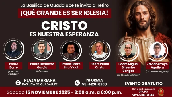 Finalmente, del 21 al 23 de noviembre, el municipio de Amecameca (Estado de México) será sede del retiro juvenil “Cristo te necesita”, dirigido a jóvenes de entre 17 y 24 años.